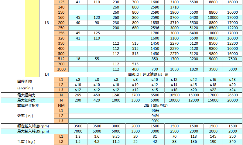 速比:1-1000有19種比速可選擇;分一、二、三級行星傳動;
